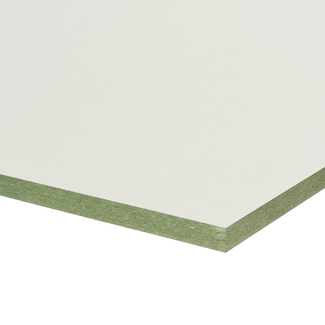 MDF plaat 18 mm 2440x1220 mm wit gegrond vochtwerend is plaatmateriaal bestaand uit houtvezels die onder hoge druk en temperatuur zijn verlijmd. Deze MDF plaat is speciaal ontwikkeld voor gebruik in vochtige binnenruimtes, zoals keukens en badkamers. De plaat heeft goede bewerkingseigenschappen, omdat er geen spanning en geen vezelrichting in zit.