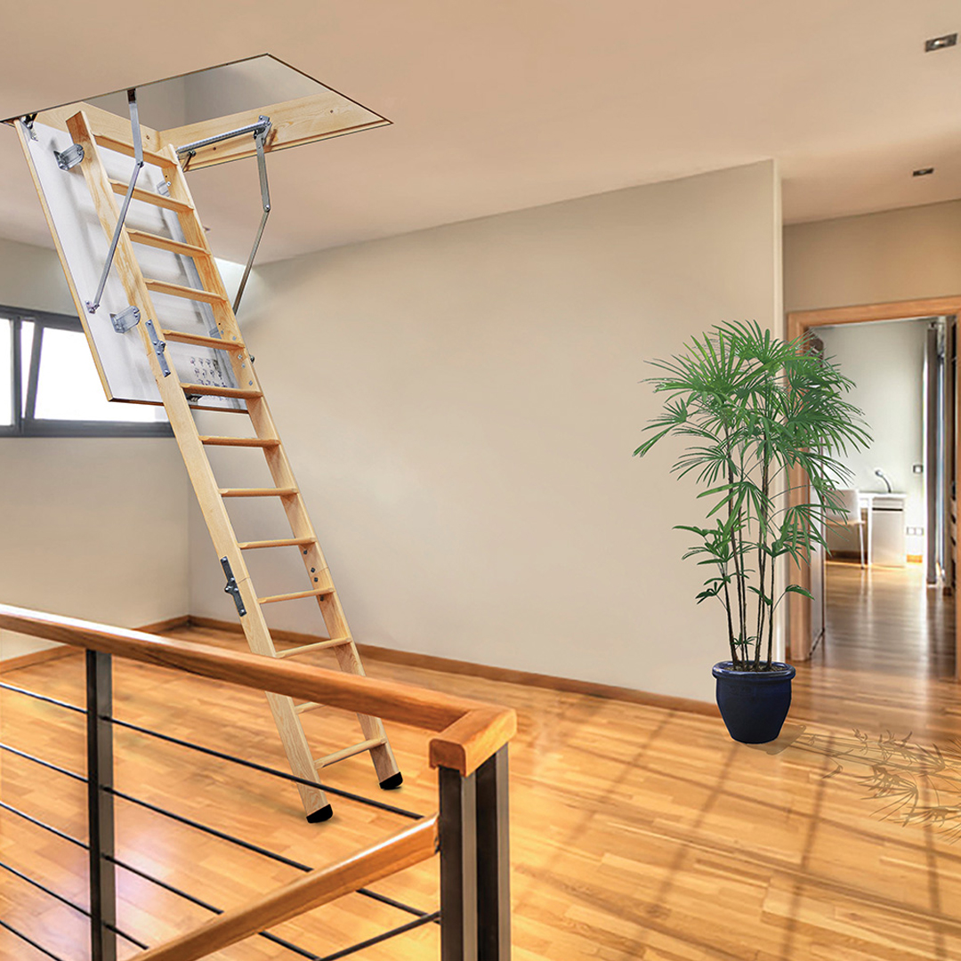 Deze houten vlizotrap van Novoferm bestaat uit drie delen, compleet met houten raveelbak. De trap is in drie delen inklapbaar, waardoor de trap geen zwenkruimte heeft op zolder. De zoldertrap bevat een tweezijdig geïsoleerd luik dat je kunt openen en sluiten met de meegeleverde trekstok. Door de afwerking met behulp van trekveren aan de bovenkant is de bediening heel soepel en is het luik netjes uitgebalanceerd.