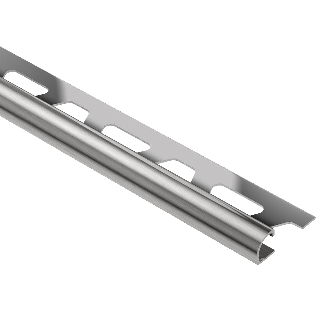 Schluter Rondec-EB is een symmetrisch afgerond profiel van roestvast staal geborsteld voor buitenhoeken in betegelde wandoppervlakken. De profielen zijn uitermate duurzaam en bieden naast het decoratieve effect ook een doeltreffende randbescherming, zodat de randen van tegels altijd goed zijn beschermd tegen beschadiging door mechanische invloeden.
