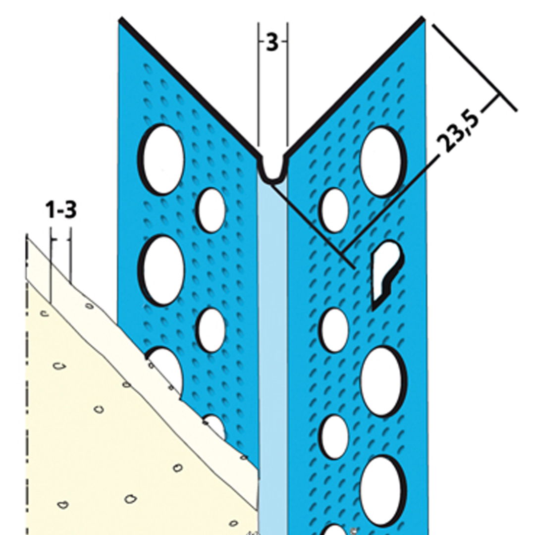 De SG1030 is gemaakt van verzinkt staal en door de scherpe neus en de flens met 3-dimensionale puntjes heeft deze een strakke afwerking. Dit zorgt voor een constante kwaliteit tijdens het klussen. Het hoekprofiel is vooral geschikt voor dunpleisterwerk tijdens het stukadoren.