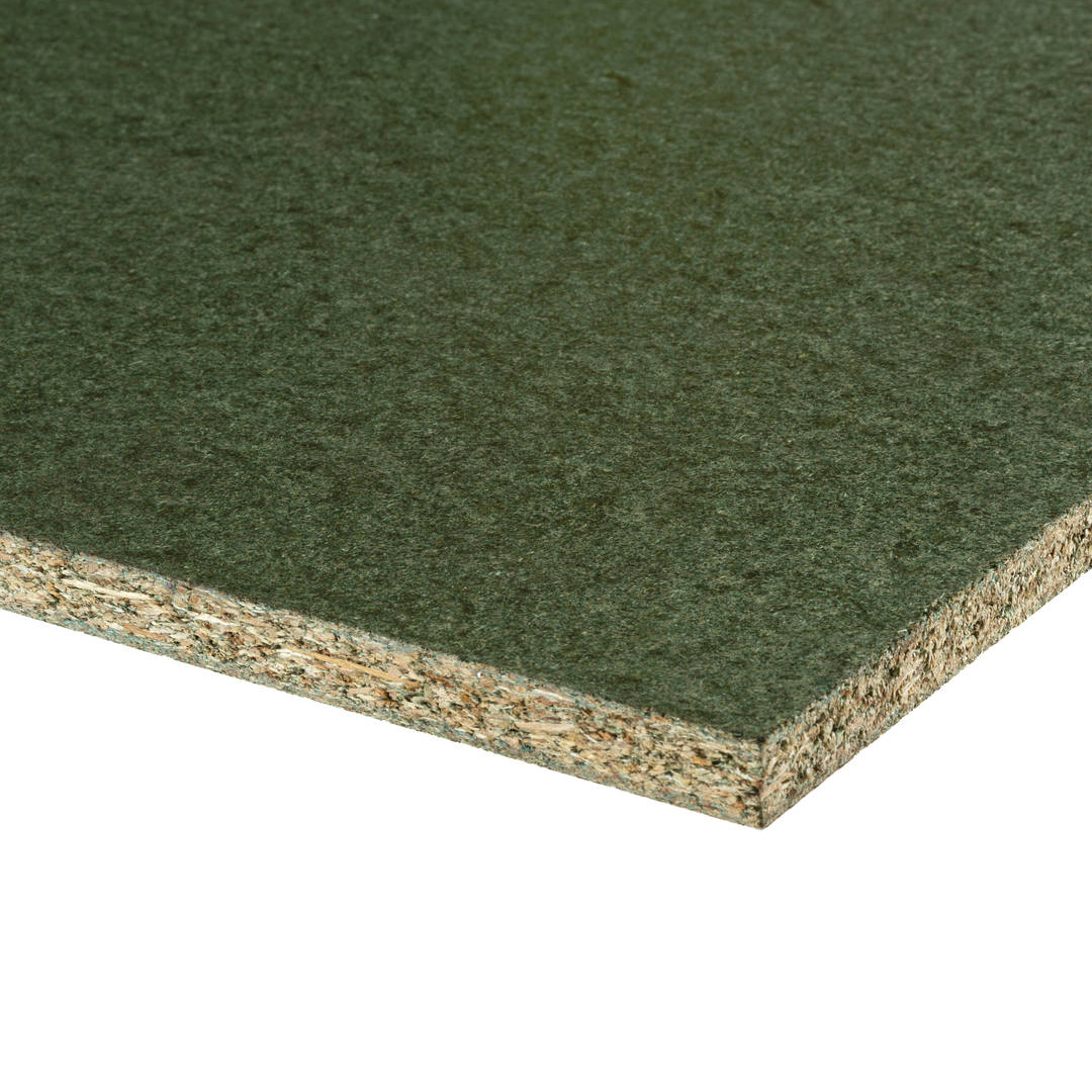 Spaanplaat 18 mm 2500x1250 mm RK vochtwerend P5 is samengesteld uit houtspanen en een vochtwerend lijmtype. De plaat is niet watervast, maar is wel bestand tegen een vochtig klimaat. Deze spaanplaat heeft rechte kanten. Om de plaat te onderscheiden van niet-vochtwerend spaanplaat, is een groene pigmentering toegevoegd. Technisch gesproken voegt deze groene kleur niets toe aan de plaat. De ongeschuurde plaat heeft een glad oppervlak, waardoor de plaat geschikt is om meerdere keren te gebruiken in betonbekistingen.