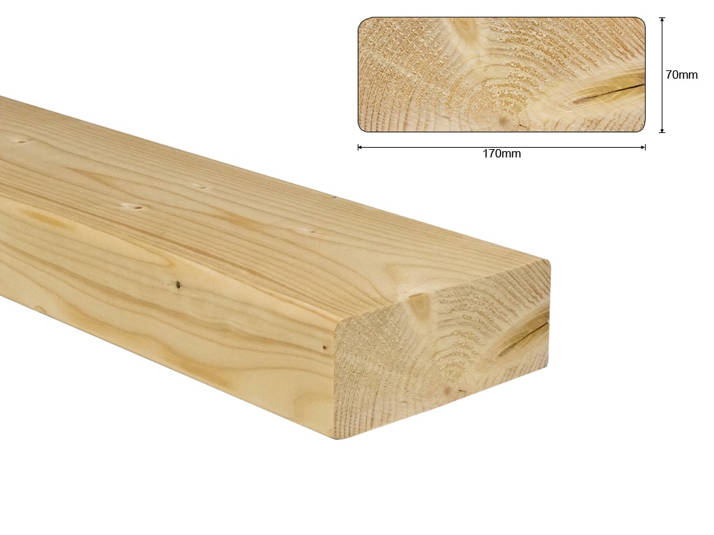A-Kwaliteit vurenhout balk geschaafd 75x175 mm, netto 70x170 mm