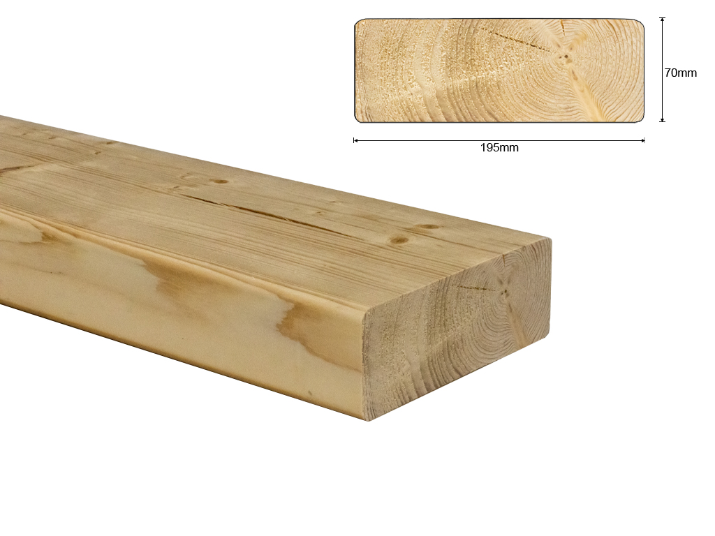 A-Kwaliteit vurenhout balk geschaafd 75x200 mm, netto 70x195 mm